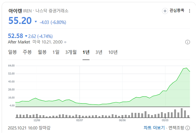 최근 미국 증시에서 ‘아이렌(IREN)’이라는 종목이 화제입니다. 2025년 들어 주가가 600% 이상 급등하면서 밈 주식이냐는 논란도 있었지만, 실체 있는 성장과 전략적 사업 확장으로 서학개미들의 관심을 집중시키고 있습니다. 아이렌은 본래 비트코인 채굴을 주력으로 하던 기업이었으나, 최근 AI 인프라로 사업 영역을 넓히며 새로운 전환점을 맞고 있습니다.