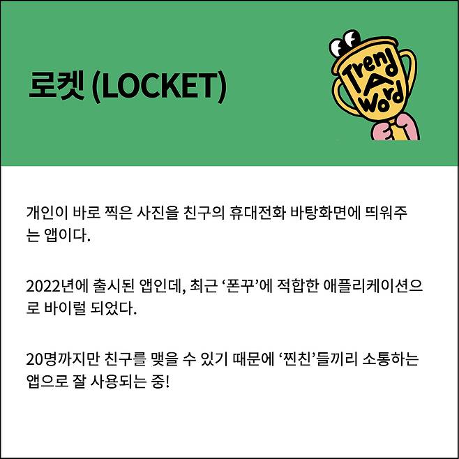 화제의 앱 로켓(Locket)을 트집쟁이들에게 바로 소개한다.