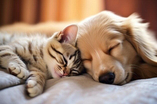 개와 고양이 모두 인간보다 더 많은 수면을 필요로 하며, 특히 어릴 때는 더욱 그렇습니다. 평균적인 개는 하루의 절반(12~14시간)을 낮잠으로 보내는 반면, 고양이는 최대 18~20시간 동안 낮잠을 자기도 합니다. 어린 동물은 훨씬 더 오래 잠을 자기 때문에 강아지가 18~20시간 동안 자고 새끼 고양이가 20시간을 넘더라도 놀라지 마십시오.