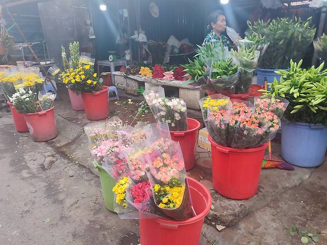 | ▲ 하노이 꽃 시장 새벽에 들른 호텔 근처 꽃시장. 동남아는 사계절 꽃이 넘치고, 시장도 꽃이 많다 |