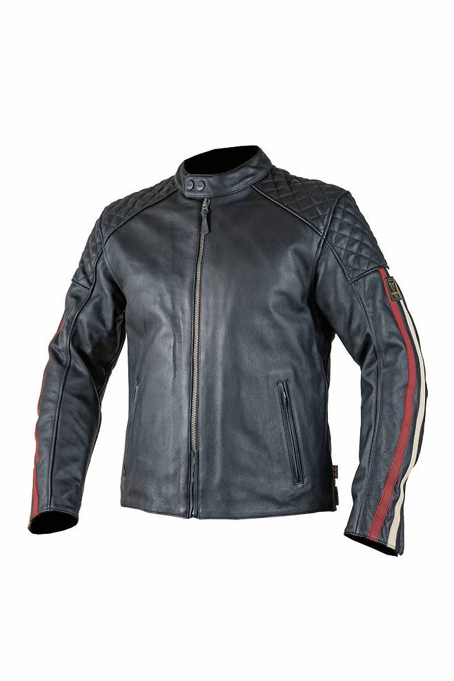 클래식한 디자인의 퀼팅 라인이 돋보이는 가죽 재킷. 어깨와 팔꿈치, 등에는 기본으로 보호대가 적용되었다. 라이딩자세를 취했을 때 편안함을 주기 위해 스트레치 플렉스 존을 적용했다. 등 하부에 들어간 트라이엄프 로고와 팔 부분에 들어간 컬러 라인이 디테일 포인트를 더했다. 어디에 입어도 잘 어울리는 스타일로 활용성이 좋다.