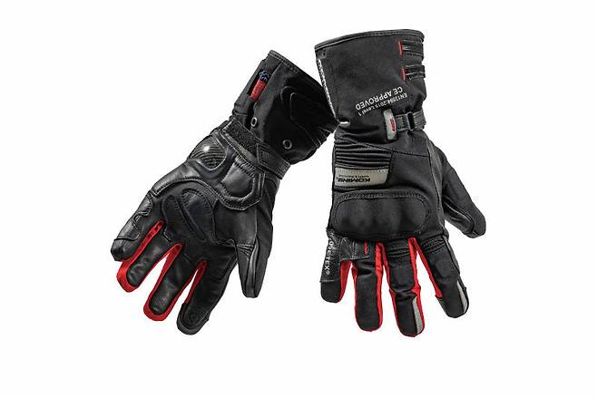 비바람을 완벽하게 차단하는 이중구조 시스템을 적용한 코미네 고어텍스 장갑. 이너 너클 보호대와 손바닥 카본 슬라이딩 몰드를 적용해 안전성을 높였다. 손끝에는 반사 패치를 적용해 야간시인성을 높였고, 전도 시 부상을 방지해 주는 핑거 브리지를 적용했다. 이중 벨크로 어저스터를 적용해 착용감이 견고하다.