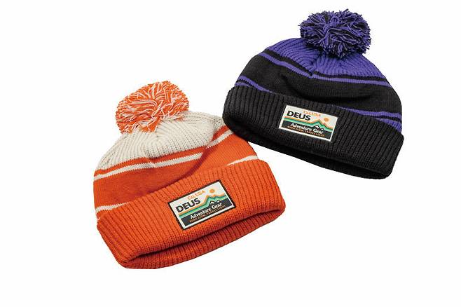 레트로한 디자인이 매력적인 데우스 비니. 빈티지한 로고 탭과 털 뭉치 포인트가 디테일을 더했다. 독특한 컬러로 포인트를 주기 좋다.