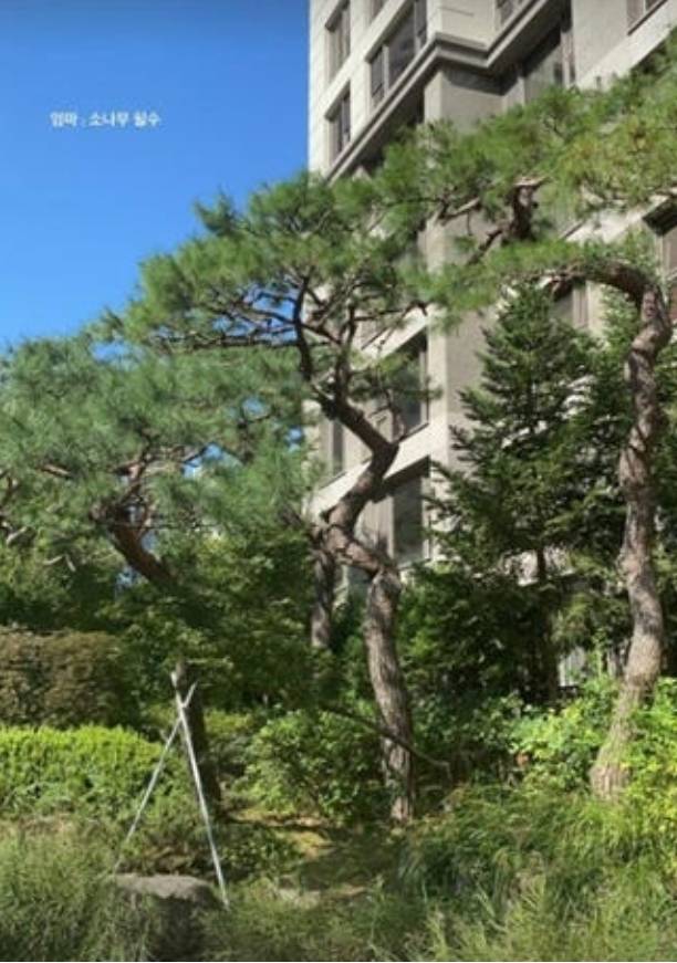 공개된 사진 속에는 울창한 나무에 인공폭포까지 다양한 조경 풍경이 보이는 아파트 단지 모습이담겨 눈길을 끌었습니다.