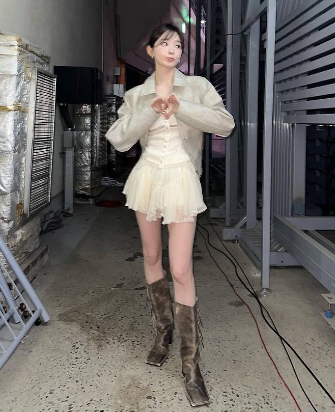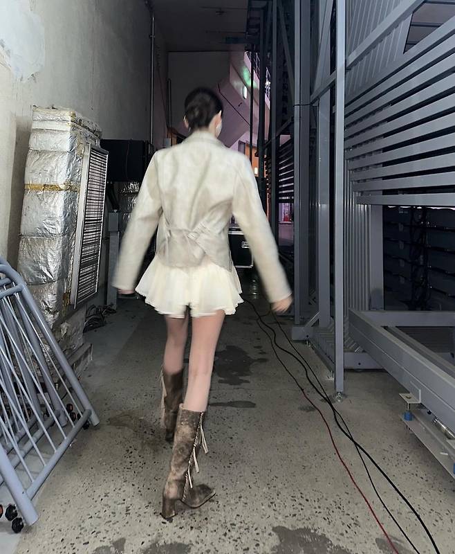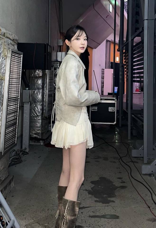 가수 강민경이 원피스에 자켓을 매치한 드레스업에 '깃털번', '가시번', '까치번' 헤어스타일링으로 여신 미모를 완성해 이목을 끌었습니다.