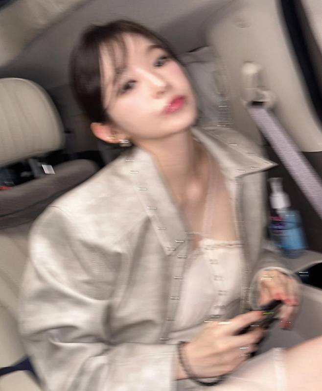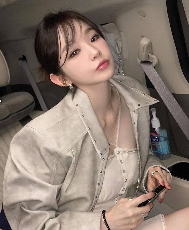 사진 속 강민경은 깃털번, 까치번 스타일링으로 청순하면서도 약간 시크한 분위기를 자아내고 있습니다.