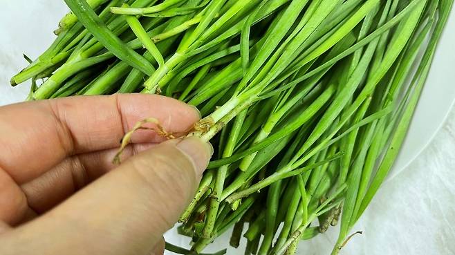 그렇다고 냉동 보관하면 맛도, 식감도 확 떨어지더라고요. 이럴 때 보관 요령만 알면 한 달도 싱싱하게 보관할 수 있는데요. 일단 부추는 물로 씻지 마시고 밑단을 가볍게 다듬어 주세요