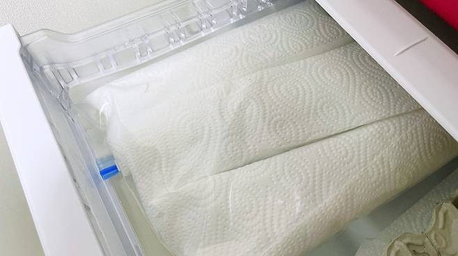 키친타월로 한번 더 감아주세요! 이렇게 감아주면 키친타월이 수분을 흡수해 보관기간을 늘려준답니다