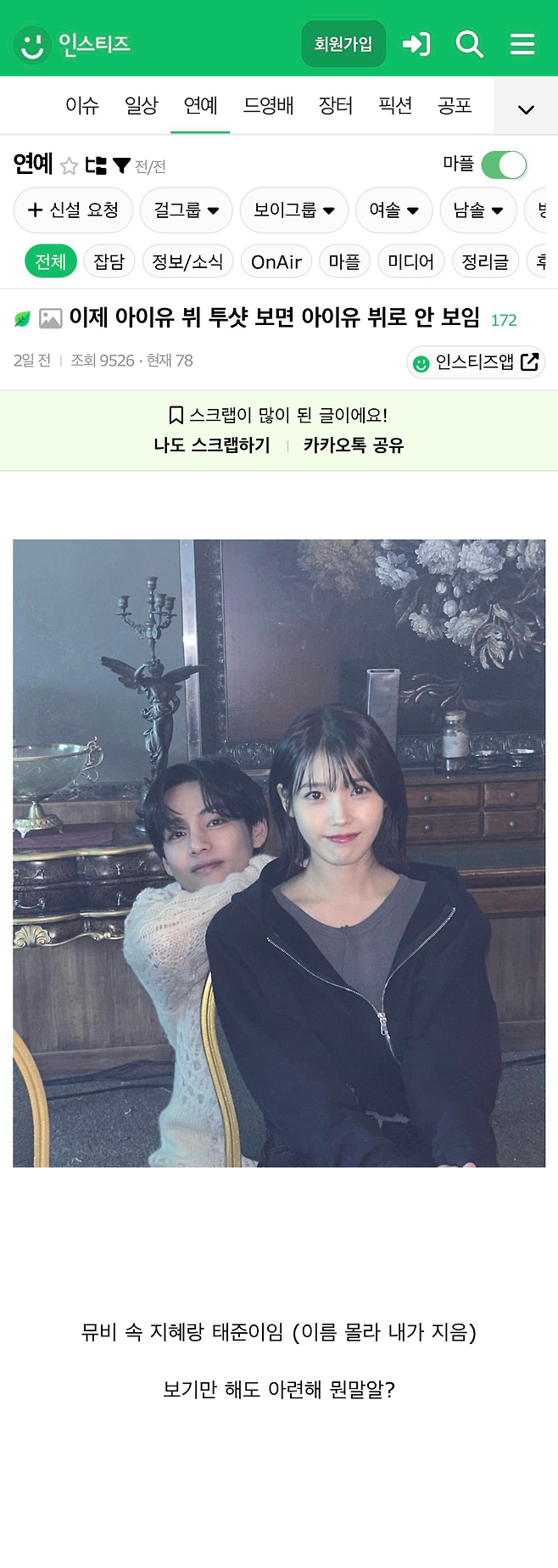 뭐랄까... 나 이젠 이 둘을 더 이상 아이유와 뷔로 못 볼 거 같아...