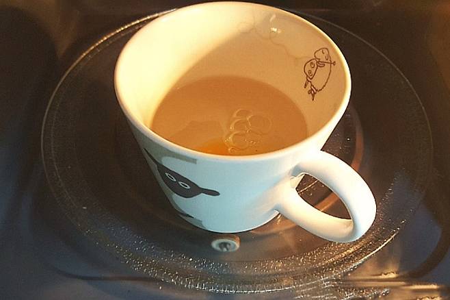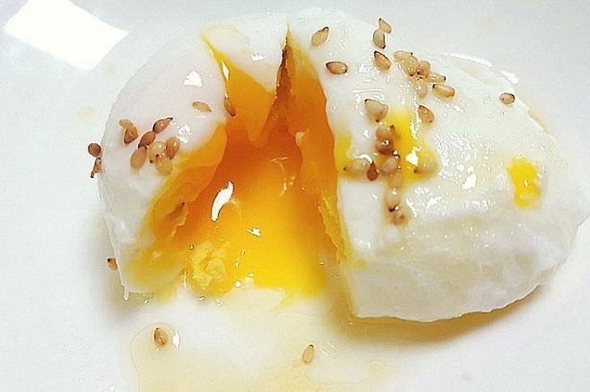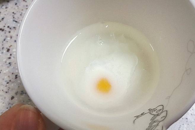 수란은 만들기 꽤 까다로운데요. 가장 쉬운 방법은 전자레인지를 활용하는 거예요. 다만 전자레인지로 만들었더니 흰자 부분이 흐트러지던데요. 이럴 때 이것 추가해 모양을 예쁘게 만드는 꿀팁이 있어요. 일단 머그컵에 종이컵 반컵 분량의 물을 넣어주세요