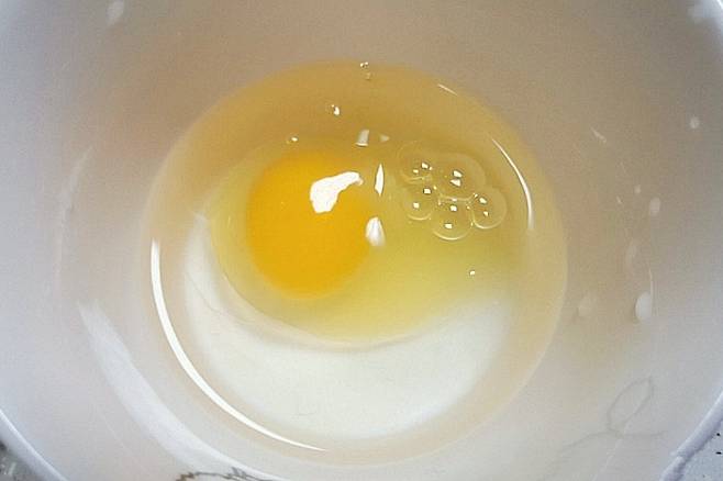 여기에 계란 1개를 깨트려 줍니다. 노른자가 깨지지 않도록 조심히 깨트려 주세요.