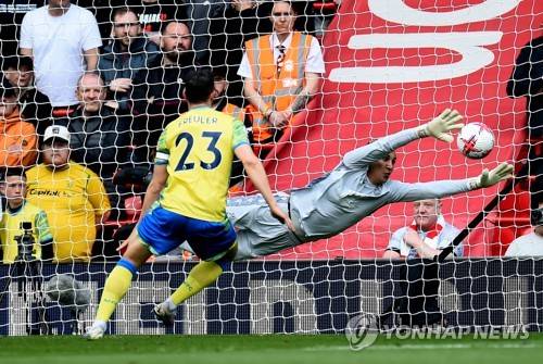 epa10585761 Goalkeeper Keylor Navas (R) of Nottingham in action during the English Premier League soccer match between Liverpool and Nottingham Forest in Liverpool, Britain, 22 April 2023. EPA/PETER POWELL EDITORIAL USE ONLY. No use with unauthorized audio, video, data, fixture lists, club/league logos or 'live' services. Online in-match use limited to 120 images, no video emulation. No use in betting, games or single club/league/player publications