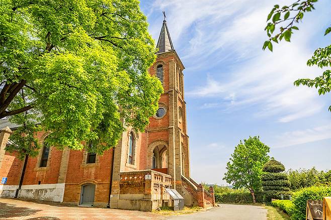 배우 아이유가 아버지 손을 잡고 미소 지으며 입장하던 그 순간, 고요한 풍경과 어우러진 빨간 벽돌 건물이 한 폭의 그림처럼 펼쳐졌다. 바로 경북 칠곡의 ‘가실성당’이다.