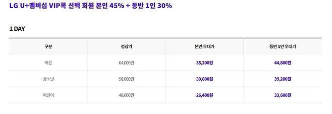LGU+는 VIP 멤버십 회원이면 본인 45%, 동반 1인까지 30% 정도의 롯데월드 티켓할인을 받을 수 있습니다. 커플이나 친구와 함께하기 유용하다고할 수 있습니다.
