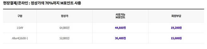 성인 : 64,000원 / 청소년 : 56,000원 / 어린이 : 48,000원 / 베이비 : 16,000원
