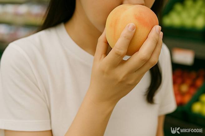 잘 익은 복숭아는 달콤하고 풍부한 과일 향이 강하게 난다. 반면 덜 익은 복숭아는 시큼하거나 풋내가 난다. 특히 썩거나 물러진 복숭아는 군내가 나는 경우도 있어 반드시 냄새를 맡아야 한다.