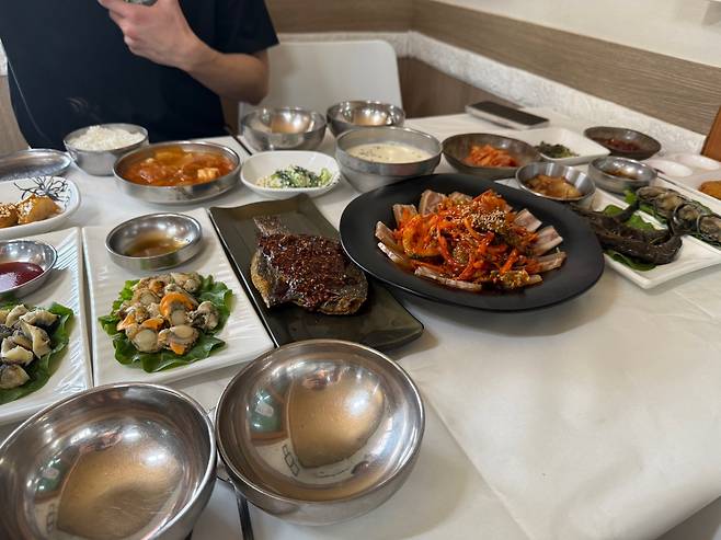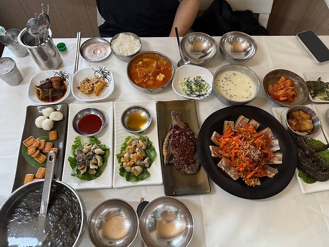 하지만 상이 차려지는 순간, 방문객은 가격보다 ‘이 정도 구성이면 충분하다’는 감탄부터 나온다. 반찬 가짓수는 열 손가락이 넘을 정도로 풍성하고, 전복, 가리비, 소라숙회, 생새우, 고구마맛탕, 콩국수, 생선까스, 갈치속젓 등 해물류와 밑반찬이 조화롭게 구성되어 있다.