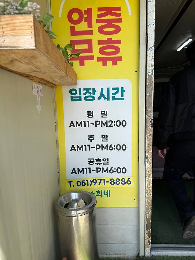 이 시간대는 직원들이 저녁 셋팅을 준비하거나 휴식을 취하는 시간으로 보인다. 예약은 전화(051-971-8886)로 진행되며, 직접 응대하는 방식이지만 비교적 친절하고 간단하게 처리된다.