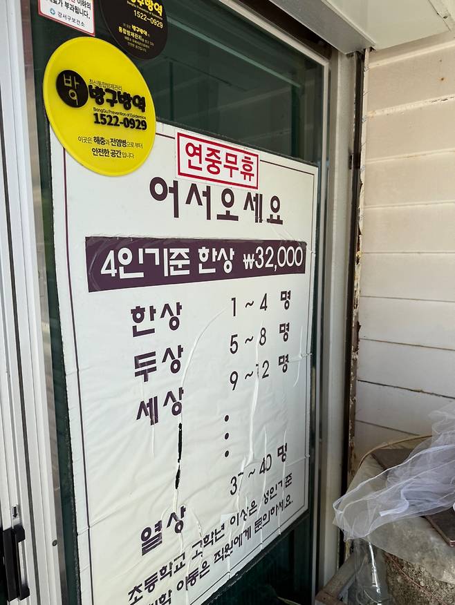2인도 가능하지만 4인 한 상 기준으로 운영