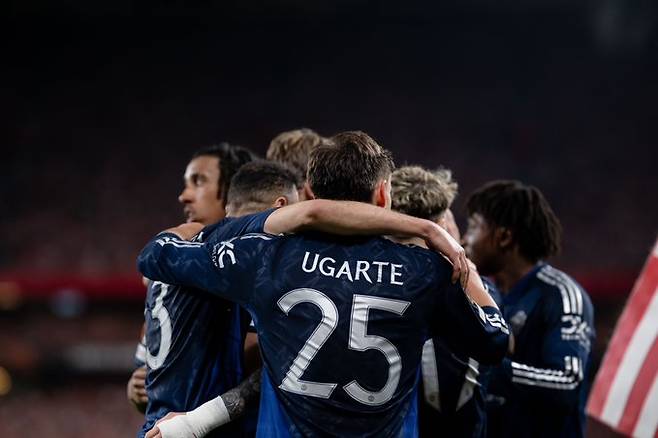 포르투갈 출신 후벵 아모림 감독이 이끄는 맨유는 2일 (한국시간) 스페인 빌바오의 에스타디오 산 마메스에서 열린 2024-2025시즌 UEFA 유로파리그 4강 1차전에서 빌바오에 3-0 완승을 거뒀다.