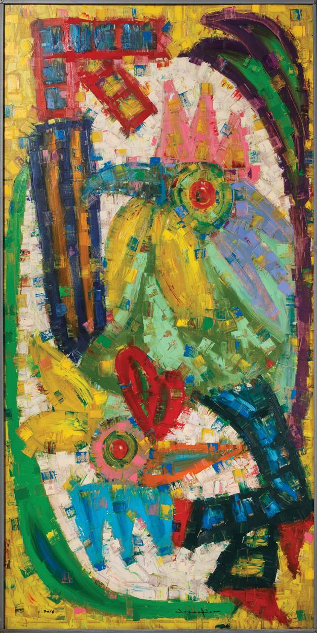 민화(民畵)와 팝아트를 조화시킨 독특한 수탉의 형상은 동서고금(東西古今)의 정서 속에서 자신만의 개성화를 이뤄낸 오랜 고민의 결과이다.(평론 발췌)