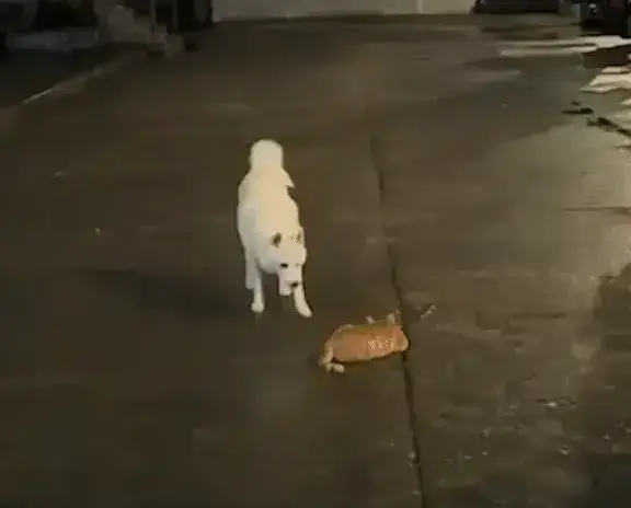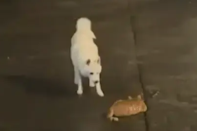 그러나 고양이는 가만히 있지 못하고 장난기가 발동하여 이리저리 뛰어다니기 시작했습니다. 그러자 강아지가 재빨리 고양이의 앞을 가로막았습니다. 그 모습은 마치 "이봐, 도망치려고? 그렇게는 안 될 거야!"라고 말하는 듯했습니다.