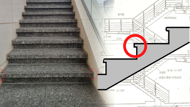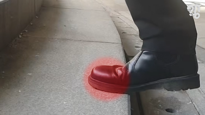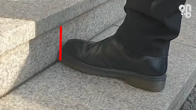 ‘아, 늦었다!’ 하고 계단 뛰어 올라가다가 턱에 걸려 넘어진 적이 한 번쯤은 있을 거다. 나도 허겁지겁 뛰다가 계단에 이렇게 튀어나온 부분 때문에 무릎을 다친 적이 있는데 이거 위험한 거 아냐? 마침 유튜브 댓글로 “계단 오르다 보면 삐죽 튀어나온 부분이 있어서 넘어지면 다치는데 이거 왜 있는 건지 알아봐 달라”는 의뢰가 들어와 취재했다. 결론부터 말하면 계단을 오르내릴 때 보행 안전 때문에 일부러 그렇게 만든 거라고 한다.