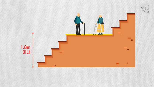 그런데 보통 우리가 계단을 내딛을 때는 발 전체를 활용하지 않고 주로 앞꿈치쪽으로 많이 딛는다고 한다. 계단을 오를 때 신체 무게중심이 뒤로 쏠리는 걸 막기 위해 상체도 어느 정도 숙여진다. 건강한 사람은 문제가 없지만 고령자나 장애인의 경우엔 좀 더 신경을 써야한다.