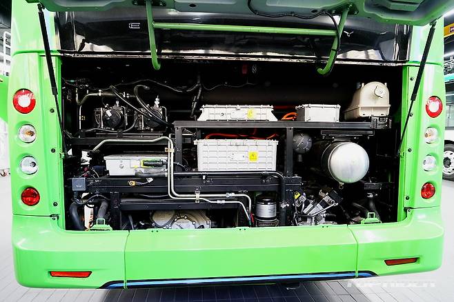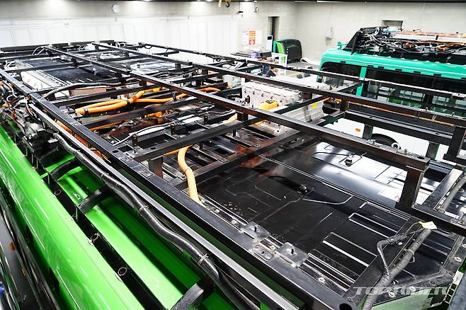 1회 충전시 최대 350km 주행이 가능한데, 수도권 마을버스의 일평균 운행거리는 200km 내외다. 승용 전기차 포트와는 다른 DC 콤보 2 충전구 2개를 마련해 56분만에 충전이 가능하다. 폐열 회수 설계와 함께 배터리팩 열관리를 실시간으로 모니터링해 안전성을 확보했다.