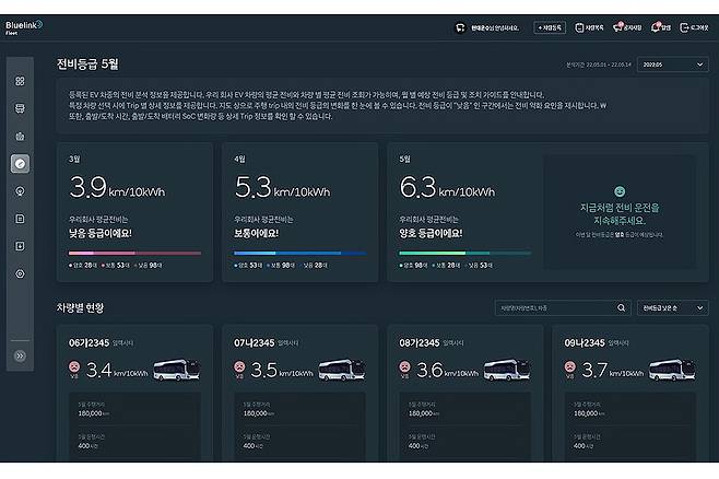 블루링크 플릿(Bluelink Fleet)은 차량 통합 관리와 비용 절감에 도움을 줄 것으로 기대된다. 차량의 정비 정보를 온라인으로 확인할 수 있고, 운행 중인 차량의 상태를 원격으로 통합 관리한다. 전비를 비롯해 운전 습관을 기록해 안전한 운전 습관을 지향하는 기능도 제공한다.