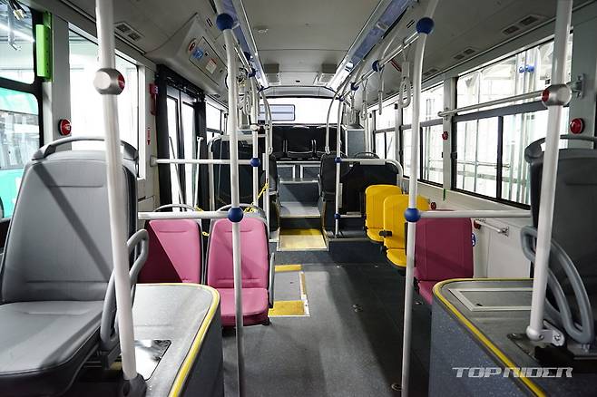 교통약자 전용 정차 버튼은 다른 버튼과 구분되는 부저음을 운전자에게 전달해 하차시 주의를 기울일 수 있도록 배려했다. 또한 앞문과 뒷문에는 초음파 센서를 마련해 하차가 완료되지 않은 승객의 존재 여부를 계기판에 그래픽으로 전달, 시각적인 정보를 보완해 준다.