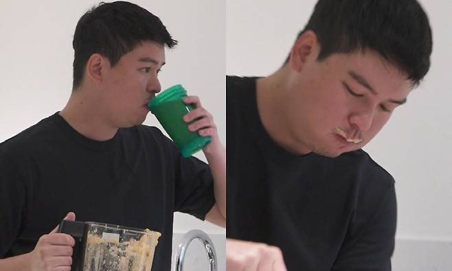 운동 후 식욕이 폭발하지만, 다이어트 주스로 억제하는 이장우.