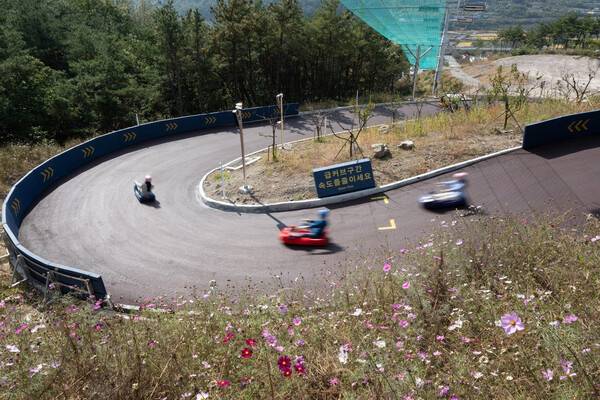 청도에는 군파크라는 테마파크가 자리하고 있는데요. 이곳에 국내 최장거리의 루지 트랙이 설치되어 있어 스릴과 동시에 자연을 함께 마주 할 수 있는 국내 여름 액티비티의 대표적인 곳입니다.