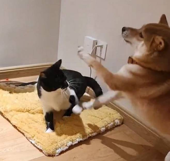 한편 이를 접한 누리꾼들은 "정말 못 말리는 조합", "고양이가 잘못했네", "시바견 강아지 주눅 든 것 좀 보소", "이건 뭐 고양이가 이겼네" 등의 다양한 반응을 보였습니다.