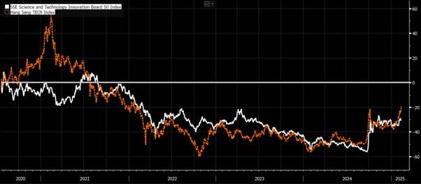 [항셍테크와 과창판 STAR50지수의 수익률 비교]