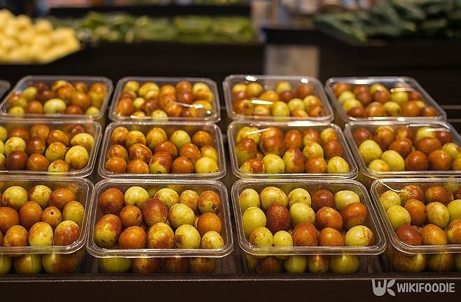 사과대추의 제철은 9월 중순부터 10월 초까지다. 지역에 따라 11월 초까지도 수확이 이어지지만, 가장 맛있는 시기는 가을 한 달 남짓한 짧은 기간에 집중된다. 사과대추는 비타민 C와 항산화 성분이 풍부해 면역력을 높이고 피로 회복에도 도움이 된다.