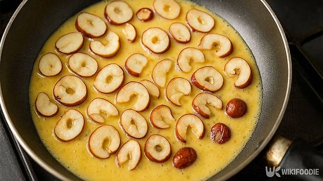 3. 준비한 계란물을 사과대추 위에 붓는다.