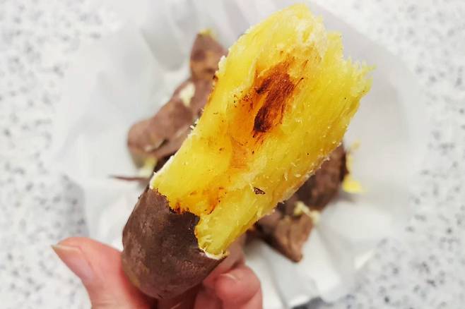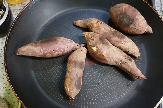 그러다 보면 서서히 군고구마 느낌이 나는데요. 냄새도 군고구마 냄새가 난답니다.