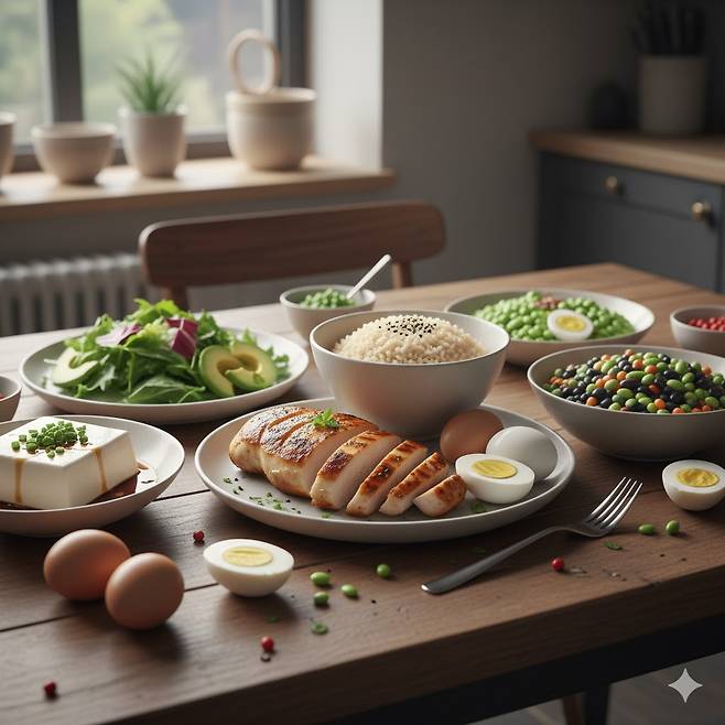 ์ค์ฒ Tip: ๋งค๋ผ ๋ญ๊ฐ์ด์ด, ๊ณ๋, ๋๋ถ, ์ฝฉ๋ฅ, ์ด์ฝ๊ธฐ ๋ฑ ์์ง์ ๋จ๋ฐฑ์ง์ ํ ๋ผ์ 15~20g ์ด์ ๊ผญ ํฌํจํ์ฌ ์ญ์ทจํ์ธ์. ๋ถ๊ท์นํ ์์ฌ๋ ๊ธ๋ฌผ์ ๋๋ค.