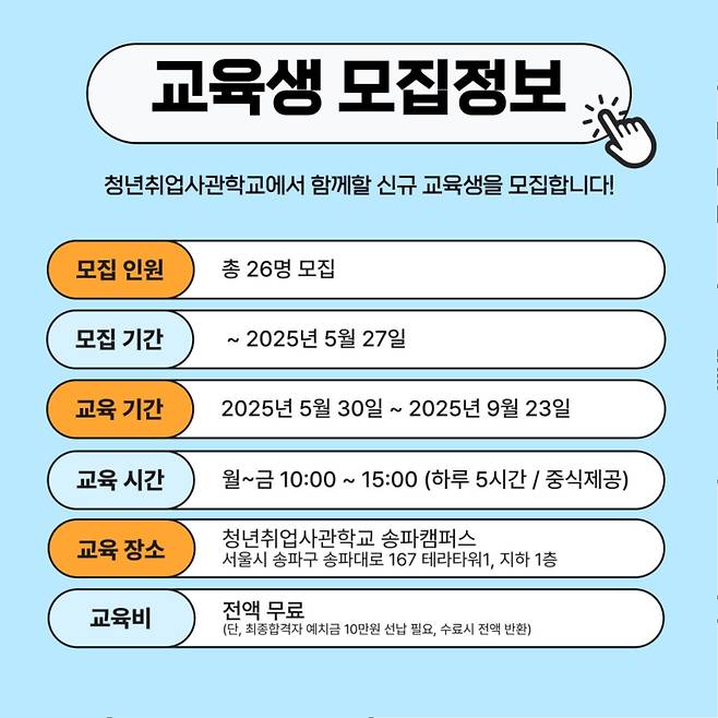 서울시에서 전액지원하는 청년취업사관학교 송파캠퍼스 교육사업입니다.