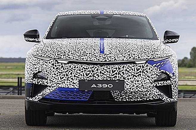 위장막을 두른 A390은 낮은 차체 비율을 지닌 크로스오버 실루엣의 독특한 차체 형태를 그대로 유지하고 있다. 앞서 공개된 A390_β 콘셉트 디자인을 상당 부분 반영한 모습으로, 가로로 길게 뻗은 라이트 바와 'Alpine' 레터링, 양쪽 모서리에 배치된 삼각형 패턴 주간주행등도 위장막 아래로 어렴풋이 확인됐다. 트랙 주행 중 포착된 모습에서는 빠른 방향 전환과 가파른 코너링을 부드럽게 소화하는 모습이 눈에 띄었다.