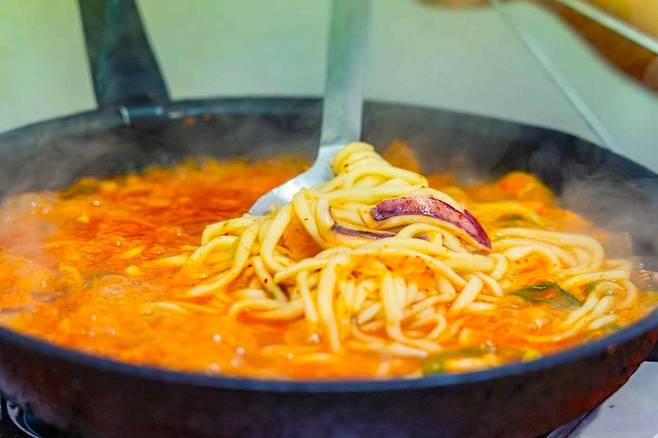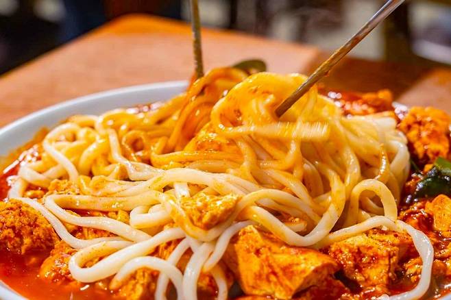 대전 맛집인 소나무집은 오징어볶음을 기본으로 알타리와 물을 넣고 끓여낸 오징어찌개로 유명합니다. 이곳을 찾는 손님들 대부분은 오징어찌개에 칼국수면 사리를 추가해, 이른바 오징어 칼국수로 즐기곤 하죠.