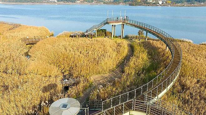 데크로 조성된 평탄한 길을 따라 걷다 보면, 갈대들이 흔들리는 소리와 함께 나뭇잎 같은 감정들이 하나둘 정돈돼 가는 걸 느낄 수 있습니다. 이른 아침엔 물안개가 피어올라 풍경이 한층 몽환적으로 변하고, 늦은 오후에는 햇살이 갈대 사이로 스며들며 따뜻한 빛을 내리쬐어요.