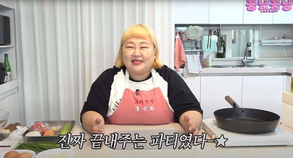 유튜브 채널 '홍윤화 김민기 꽁냥꽁냥'에서 공개된 영상에서, 홍윤화는 자신만의 다이어트 회복 음식으로 '애호박 순대'를 소개했습니다.