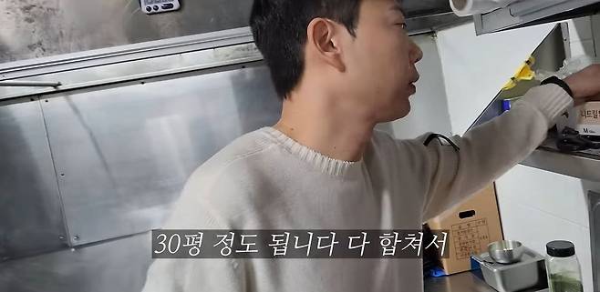 직원들은 5시에 출근해요. 홀 한 명, 주방 한 명 이렇게 두 명이 먼저 나와요. 그리고 6시에 이제 다음 친구들 다 나옵니다. 가게는 총 30평 정도 됩니다. 다 합쳐서요.