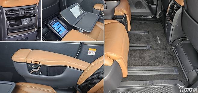 그리고 VIP 의전용으로 특별히 제작된 2열의 오토만 시트는 최상의 편안함을 제공한다. 체감 상으로 좌석의 높이가 제법 있는 편인데, 토요타에서는 처음부터 의도적으로 가정용 소파에 해당하는 높이로 설계했다고 한다. 그리고 그 약간 높은 듯한 시트의 아래에는 극상의 쾌적함을 선사하기 위한 다양한 기능들이 숨어 있다. 먼저, 2열 좌석에는 열선, 통풍, 그리고 마사지 기능이 모두 적용되어 있을 뿐만 아니라, 하단에는 차체에서 시트로 전달되는 진동을 잡아내기 위한 전용 마운트까지 내장하고 있다. 이 덕분에 앞좌석이나 3열좌석과는 비교도 되지 않는 승차감을 선사한다.