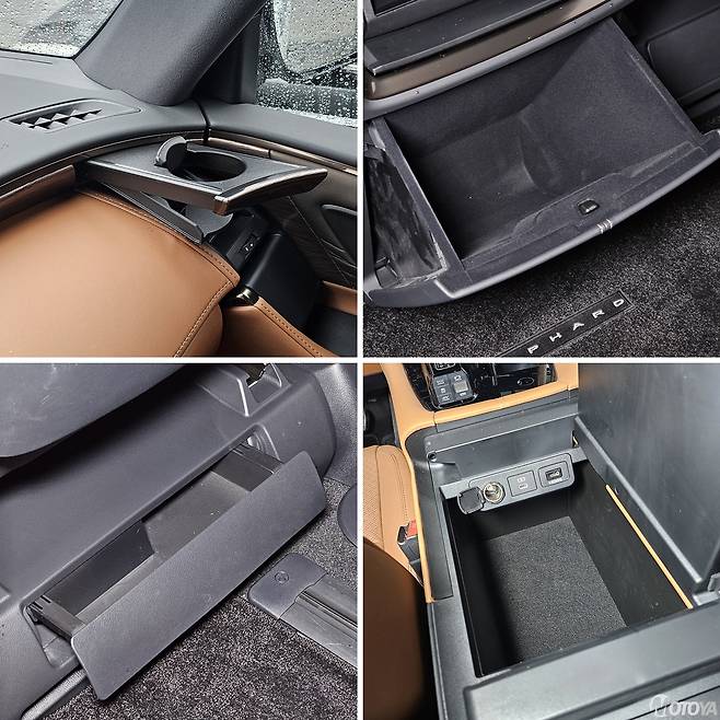 이 뿐만 아니라 차내 곳곳에 수납공간을 마련해 편의성을 살리고 있다. 도어트림은 물론, 센터콘솔 내부에도 대용량의 수납공간이 자리하며, 앞좌석 컵홀더는 대시보드 내에 접이식으로 배치되어 있다. 뒷좌석에도 하단에 접이식 우산을 수납할 수 있는 공간이 마련되어 있다.
