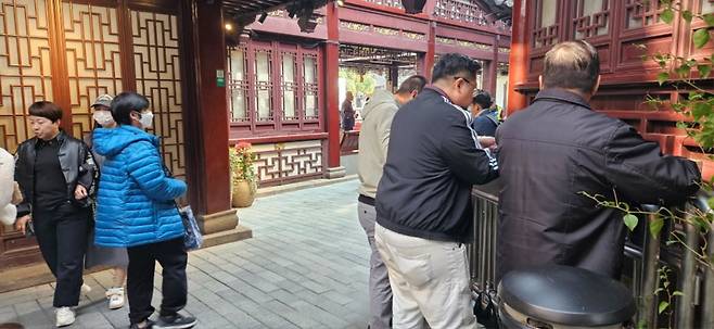 루쉰 공원에서 아재들이 무술연습을 하고있습니다.