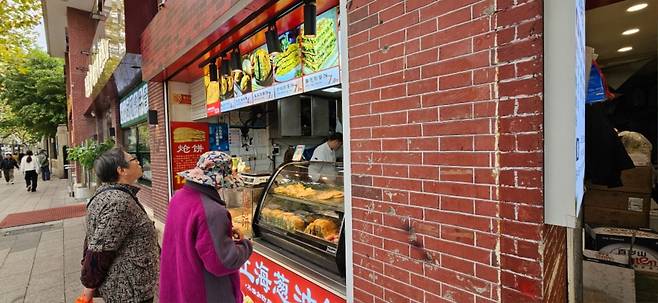 공원앞 한 부추호떡집에서 할머니들이 줄서서 호떡을 사갑니다.