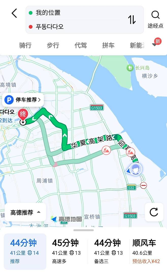 시내에서 호텔까진 20분인데 택시를 잡아탔습니다. 디디택시라는 어플을 받아야하는데 알리페이에 기능이 다있습니다.